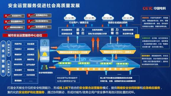 全面“联接”——展示的安全运营服务能力,好比地基的“粘合剂”,通过横向联动、纵向贯通,提供数据安全防护、重保服务、云平台安全、商用密码等安全服务。“该中心可进行全年不间断监测、处理、预警等服务,为智慧城市、城市云、大数据中心及其他城市关键信息基础设施建立网络安全监测、信息通报和应急处置机制,及时掌握城市及政企用户网络现状及趋势,做好预警、通报、处置等工作。”中国电科网络安全技术专家表示,目前已能够对网络中各类海量网络数据的实时监测,并通过专业安全团队,应用人工智能、大数据分析等技术,为用户可视化展现网络及业务系统的健康状态与未来走势,为各类业务系统建立可度量的风险模型,为用户提供事件分析与审计、风险评估与度量、预警与响应、安全态势分析等多项安全服务,并借助标准化的流程管理实现持续安全运营。