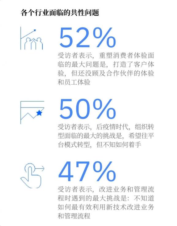 方案来了!IBM商业价值研究院针对后疫情时代数字化重塑中存在的关键问题,对13个行业、近300位企业高管进行了调研,发布了《共创共赢,聚智前行⸺中国智慧企业转型升级蓝图》研究报告。在报告中,总结出了不同行业面临的共性问题,并且总结了当下企业在数字化重塑中面临的四大痛点问题。在此,《中外管理》为您梳理、披露。