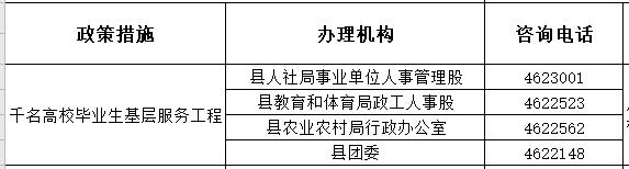 从 2020 年起,每年招募1000名以上高校毕业生从事“三支一扶”“大学生志愿服务西部计划”、农村“特岗计划”等服务 基层项目,切实解决基层人才紧缺问题。