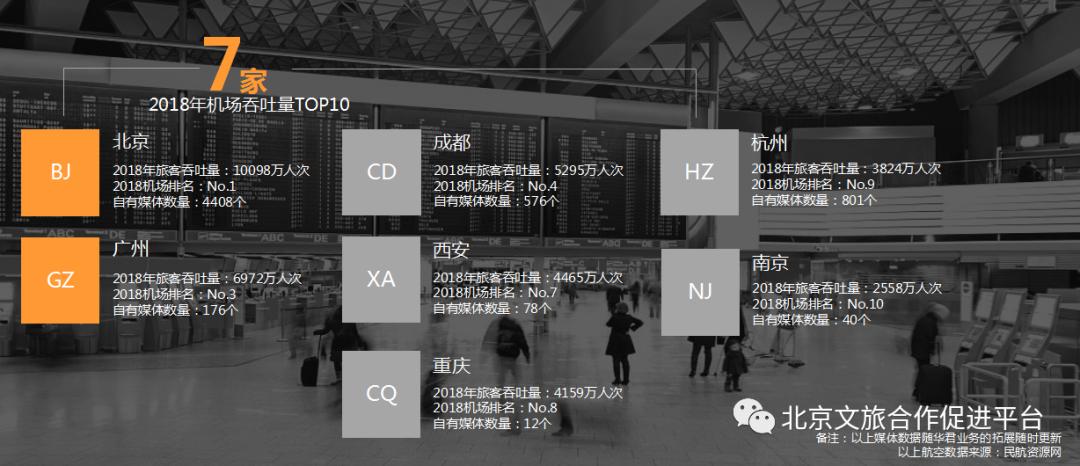 全国机场吞吐量TOP10中,华君自主经营媒体所涉及的机场为7家。