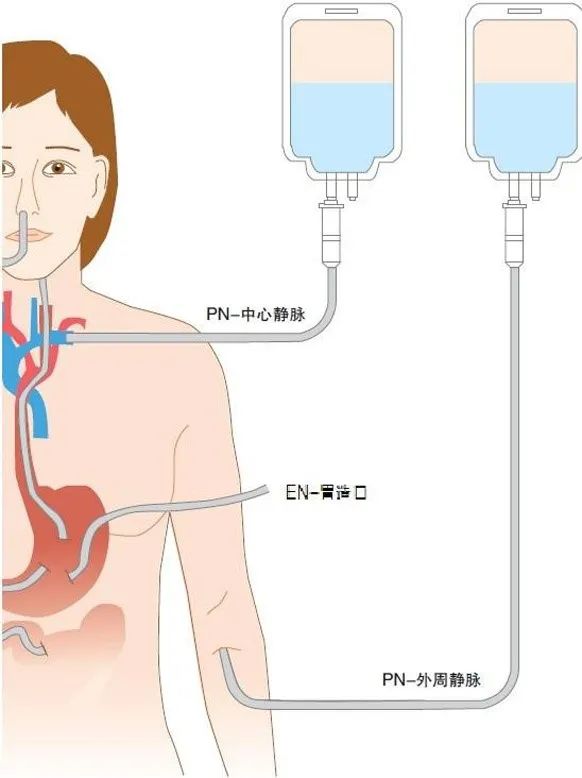 根据营养素补充途径,临床营养支持分为肠内营养支持(通过喂养管经胃肠道途径)与肠外营养支持(通过外周或中心静脉途径),两者各有利弊。