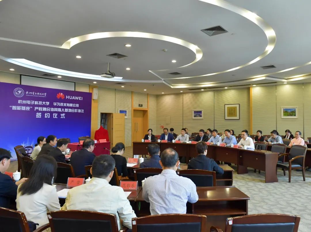 10月15日上午,《杭州电子科技大学—华为“智能基座”产教融合协同育人基地合作协议》签约仪式在下沙校区科技馆举行。我校校长朱泽飞、副校长徐江荣,华为公司高级副总裁邓泰华、华为杭州研究所所长庞云光出席仪式。我校相关学院和部处负责人,华为技术有限公司相关负责人等参加活动并开展交流。