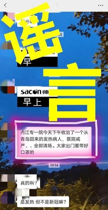 “新专医院疑似病例”、“医院戒严、全部清场”……近两日,在四川省内江市一些市民的微信朋友圈中流传着两条内江市第一人民医院新区发热门诊“清场”和消毒的视频,个别人籍此怀疑内江市第一人民医院收治有疑似新冠肺炎患者。