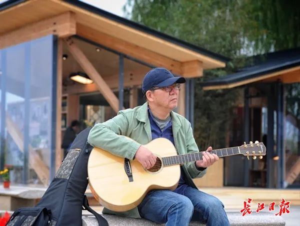 15日才从上海回来的冯翔,17日下午走进汉口江滩朗读亭。他弹着吉他读唱了一首他自己原创的歌谣——《二十四节气歌·夏秋谣》。