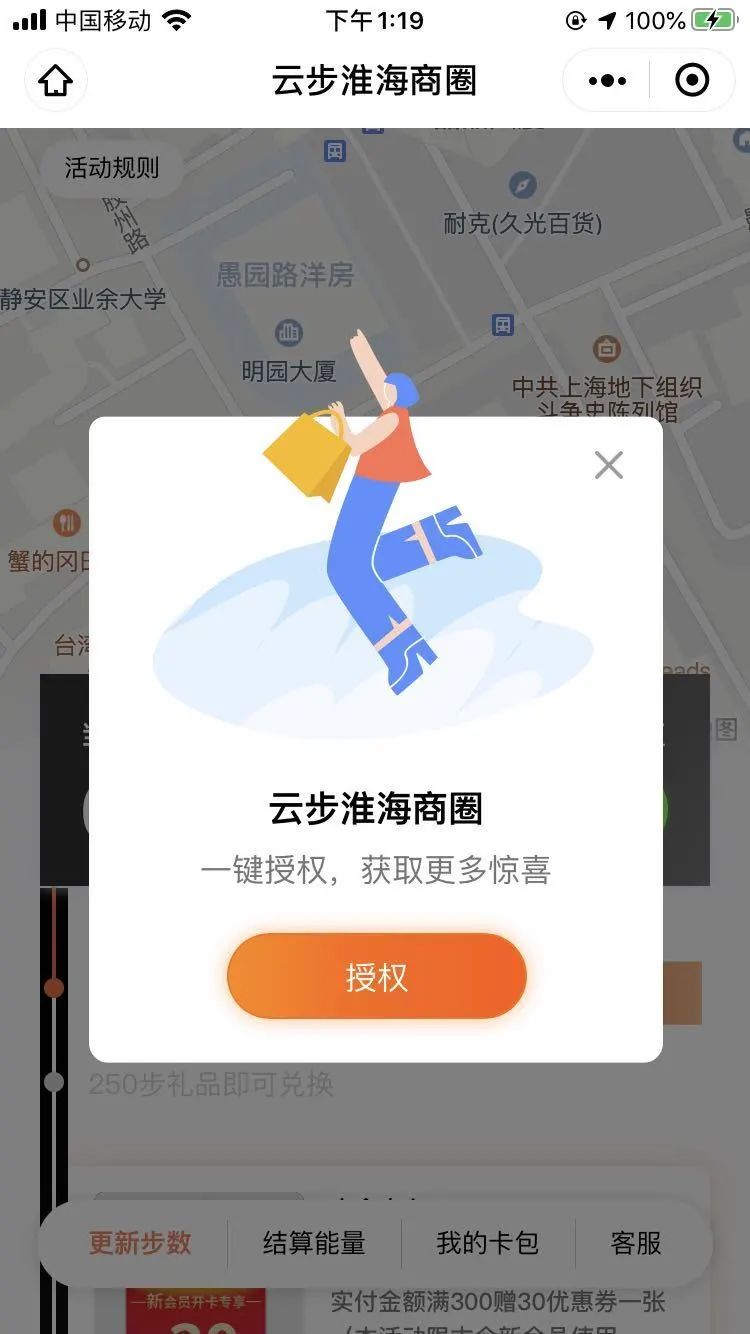 现在,走路还能收获福利!关注“侬好淮海路”,点开“福利社”,授权成功后就可以看到你在淮海路范围内所走的步数。转换成相应能量后,就可以兑换各种优惠券哦。