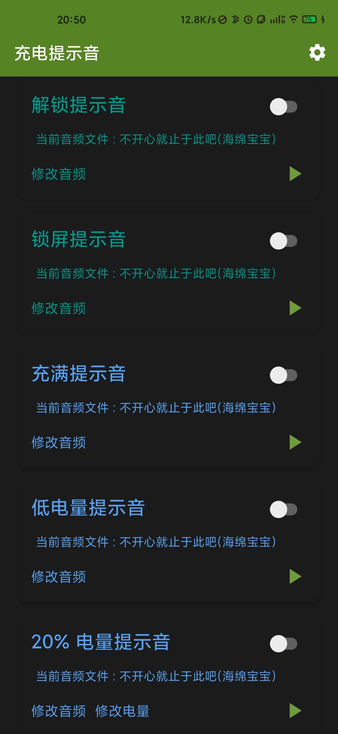 因为无论是充电器插入提示音还是拔出提示音,App 本身就有提供这些选项,而不是像 iPhone 那样需要我们新建一系列的快捷指令。
