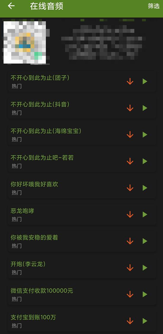 不想花时间折腾的差友,可以直接在 App 左上角自带的 “ 在线音频 ” 曲库里下载一段音频换上去。