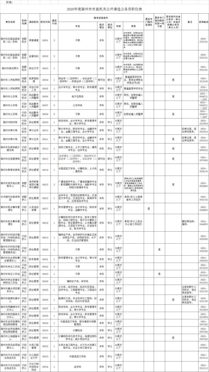 符合《2020年度滁州市市直机关公开遴选公务员公告》规定的报名范围和资格条件的科级以下公务员均可报考。