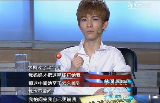 在《杨澜访谈录》里,他谈及自己曾经因为专业老师要求买DV、相机和电脑三件套,打电话向妈妈要钱,但心里却充满了愧疚。