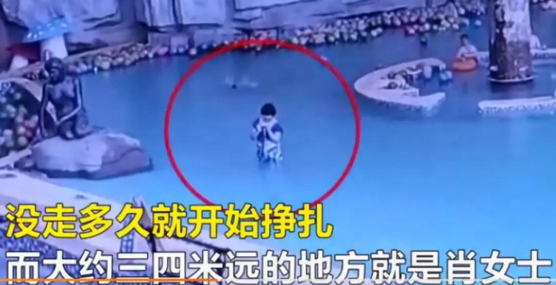 4岁的孩子离开浅水池进入深水池。随着他走向水池中间,他开始溺水,挣扎。