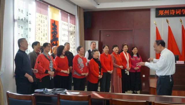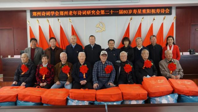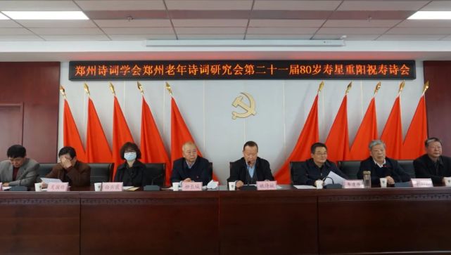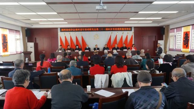九九重阳日,秋光一洗新。天清贺仙叟,觞咏向高宾。10月21日下午,郑州诗词学会、郑州老年诗词研究会第二十一届80岁寿星重阳祝寿诗会隆重举行,郑州诗词两会会长姚待献、市委老干部局四级调研员、市老干部活动中心书记白云霞,市老干部活动中心主任柳长城及理事会80余位学会会员参加诗会。