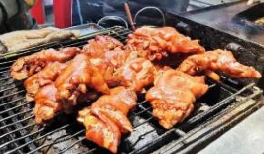 店里的猪蹄都是现烤现卖的,猪蹄个头儿虽不大,但每个烤制的超级入味,出炉后都会撒上店里秘制的酱料,还有辣椒和花生碎,每一块都烤的皮酥肉嫩,香浓软糯,来桂林路必尝美食之一。