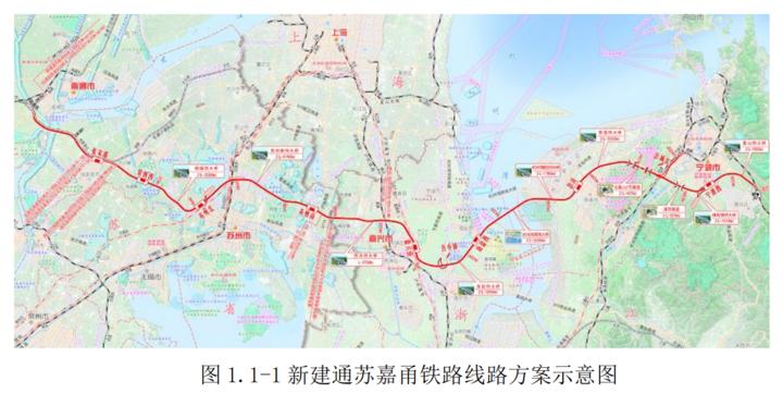 新建通苏嘉甬铁路起自南通,途径苏州、嘉兴,跨越杭州湾进入宁波,其中跨杭州湾通道工程位于钱塘江河口段,工程北起嘉兴海盐县,南至宁波杭州湾新区。