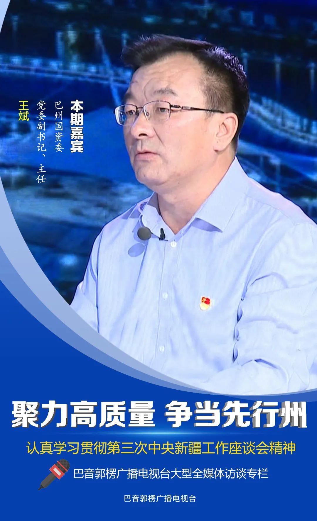 原标题:《访谈丨聚力高质量 争当先行州——专访巴州国资委党委副书记、主任王斌》
