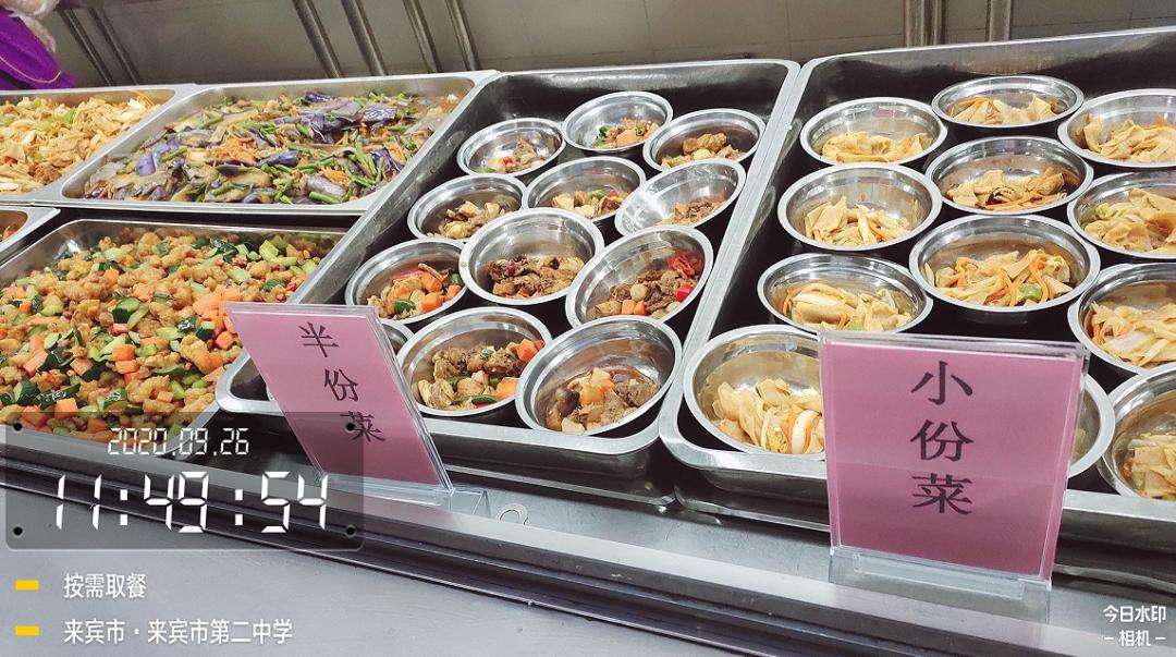 来宾市第 二中学食堂的“半价菜”“小份菜”。