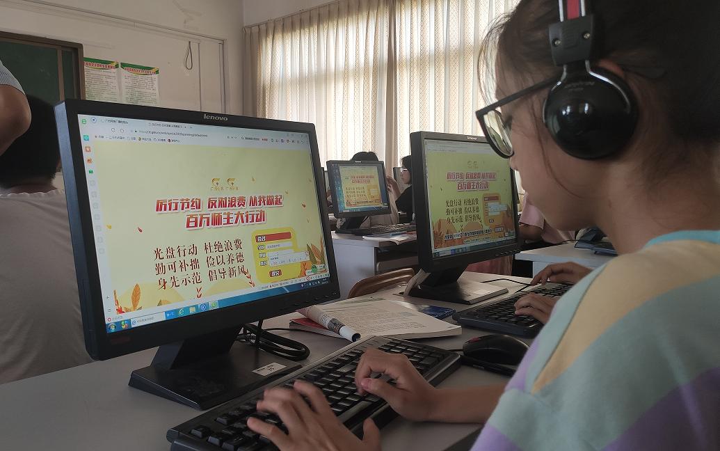 来宾高级中学学生在电脑进行“厉行节约 从我做起”网上签名活动。