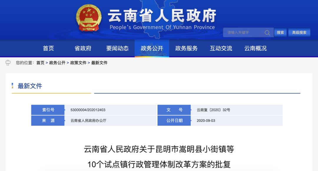 10月21日,昆明市人民政府发布《嵩明县小街镇行政管理体制改革方案》,从财政投入、土地指标、机构编制、干部管理、考核激励等方面为改革试点镇小街镇“再赋能”。