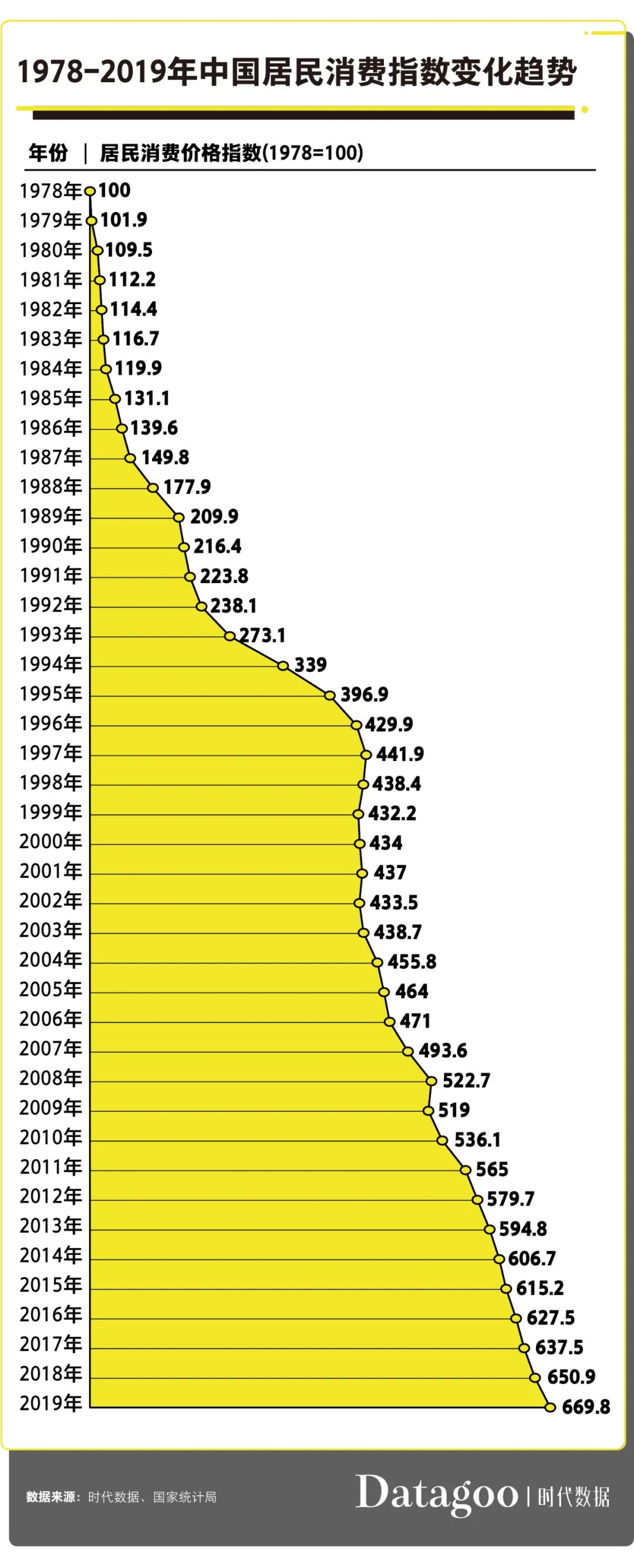 相比于改革开放初的 1978 年,1994 年的物价大概翻了 3 倍多,到 2018 年则翻了近 6.5 倍,那么只看这 25 年,也就涨了一倍。