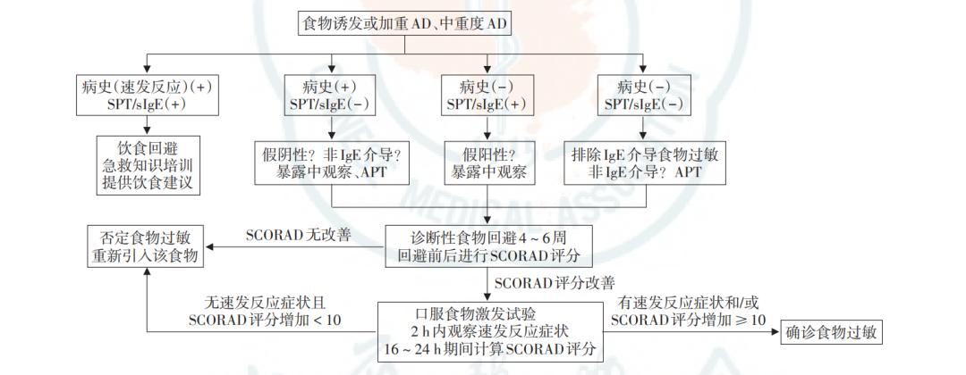 通过病史询问和辅助检查,临床医生可用以下流程来诊断AD相关食物过敏,并给予相应治疗。