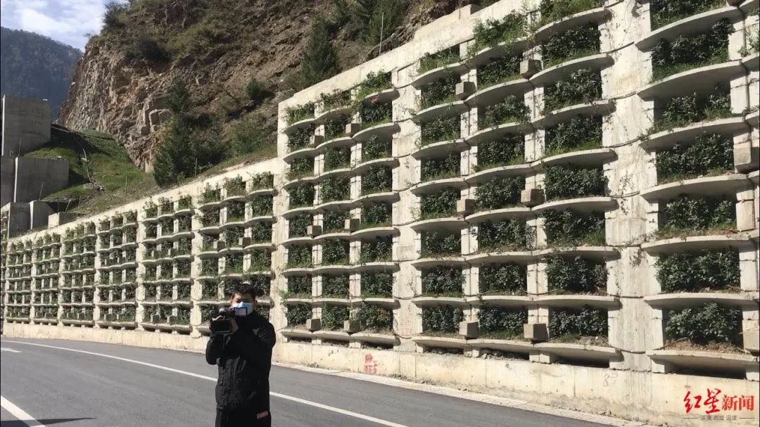 “公路两边设置生态挡墙的立体绿化,这还是一款专利产品,在四川交通建设领域第一家试点的项目。”指着这些花墙,潘嵩介绍,这些装配式生态挡墙,里面种植了迎春、蔷薇、月季等植物,一些植物还是当地特有品种,辅以滴灌系统,生态挡墙在保持四季常绿的同时,还能成为一面景观墙。潘嵩介绍,这样的生态处理方式在新川九路上广泛运用,目的是将新川九路打造成交通加旅游融合的新公路。