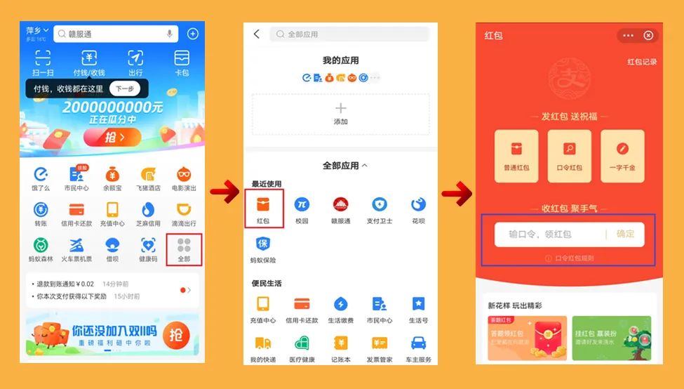 将不定时的公布支付宝红包口令