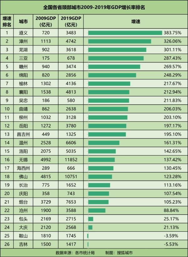 GDP仅次于省内最高“头部城市”的“颈部城市”,过去十年的经济增长状况如何?搜狐城市选取了内地26个省份的GDP第二城(西藏城市设立时间较短,故没有城市入选;广东、江苏、浙江、山东、河北、内蒙古GDP第二城为39个主要城市之一,故选取GDP第三城,福建选取GDP第四城),看看究竟谁是过去十年的经济增长冠军,又有哪些城市惨遭垫底。