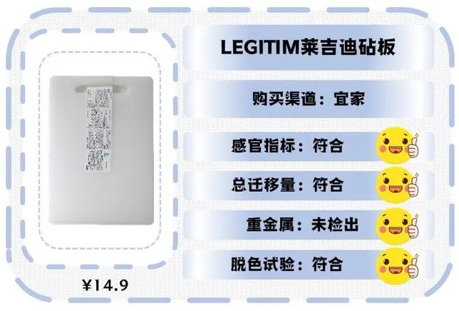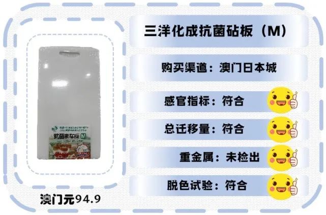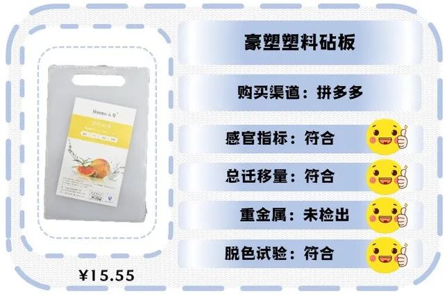 8款塑料砧板的感官指标均符合要求,理化性能均符合标准要求。