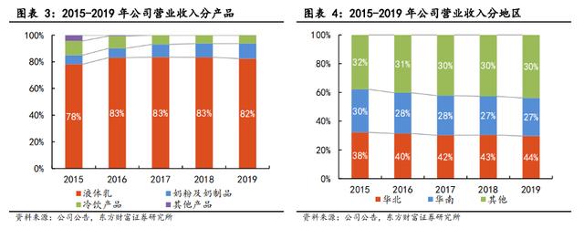 按照区域划分,华北和华南是伊利两大销售区,基本贡献了公司70%的营收。