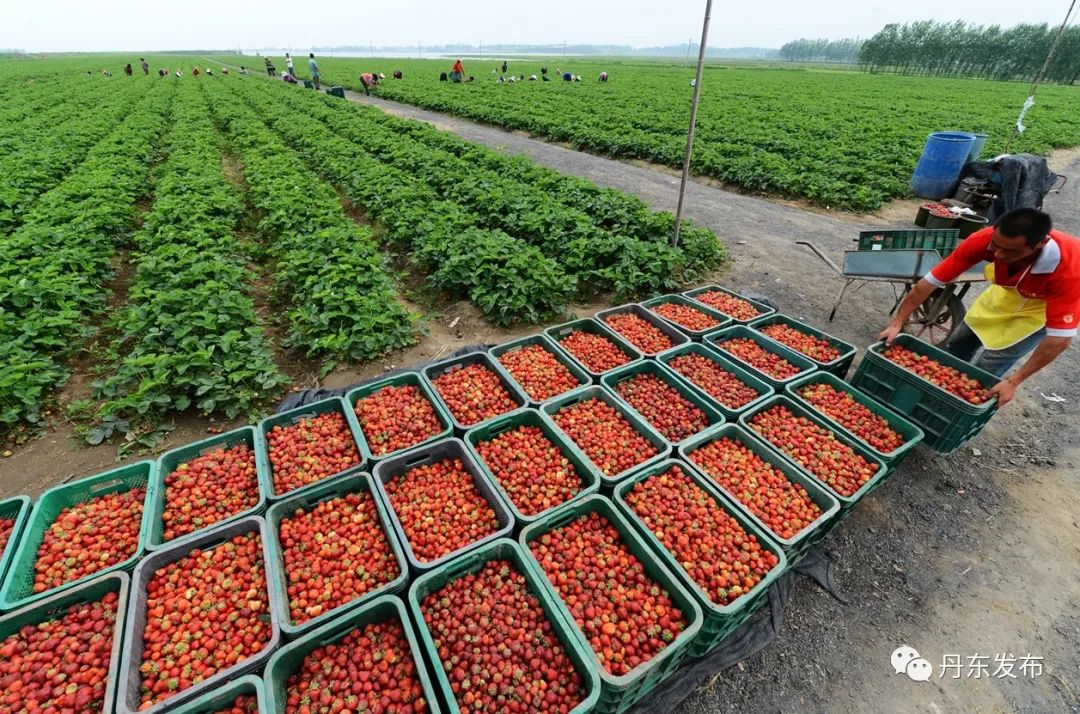 丹东是优质草莓、板栗、柞蚕、林蛙、贝类等一大批农产品全省乃至全国最大生产基地。丹东草莓,辽宁省丹东市特产,全国农产品地理标志。丹东地区是辽东山地丘陵的一部分,属长白山脉向西南延伸的支脉或余脉,有丰富的水资源,气候湿润,降水充沛,光照有余,适合草莓生长,丹东草莓果实呈圆锥形或长圆锥形、椭圆形等,外形美观、色泽亮丽,芳香浓郁,酸甜适口。(作者:刘晓阳)
