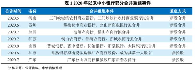 2020年4月,银保监会表示,中小银行在疫情期间受到明显冲击,今年将会大力推进中小银行的改革重组工作。在相关政策支持下,2020年以来中小银行掀起合并重组热潮。与前期不同的是,本轮合并重组的首要目的为“报团取暖”,提高风险抵御能力。具体形式上,本轮合并重组包括新设合并及参控股两种模式。
