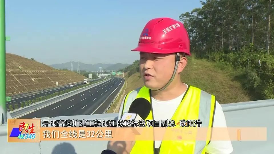 我们全线是32公里,阳江段是大槐到那龙段。针对改扩建的特殊性和复杂性,我们也是制定多个专项施工方案,通过4个阶段,10次交通导改。我们制定了科学、合理的工序衔接和交通导改,保证了车辆的行车安全和同步的改扩建施工任务,按照合同工期提前了40天完成了全部施工任务。