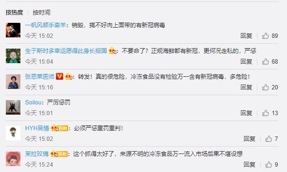 网友纷纷表示:冷冻食品没有通过检疫流入市场真的太危险了,正规冻品都有可能检出新冠病毒更何况走私的,一定要严查!严惩!
