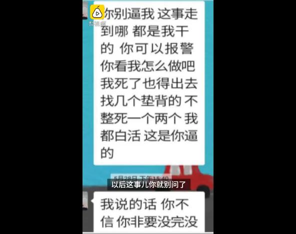 “你可以报警,我死了也得出去找几个垫背的,不整死一两个,我都是白活,这是你逼的。”