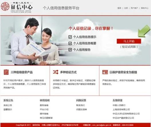个人信用报告:为注册用户展示其个人信用信息的基本情况,包括信贷记录、部分公共记录和查询记录的明细信息。