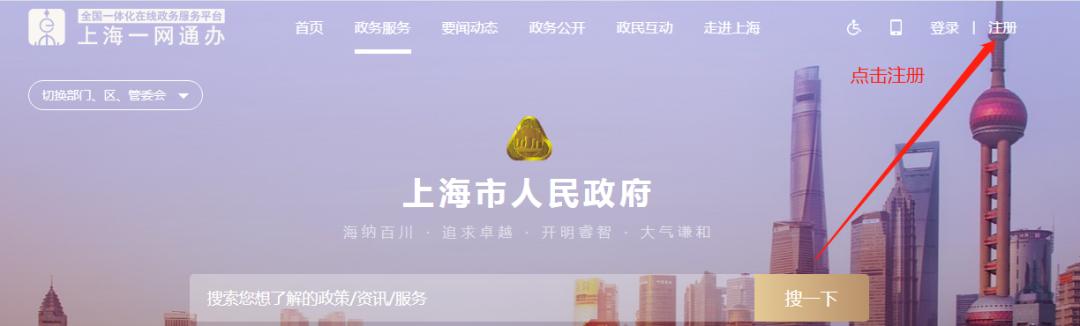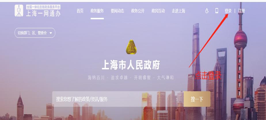 1.申请人登入“一网通办”,网址:http://zwdt.sh.gov.cn/govPortals/region/SH00MH