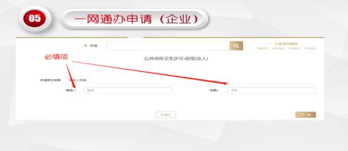 7.2企业申请人:按照营业执照上的信息,填写标注的必填选项后,点击“下一步”按钮注意:标注为必填项的,必须填写