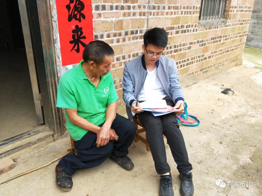 黎子恒(右一)到贫困户家了解生活情况,核实填写手册