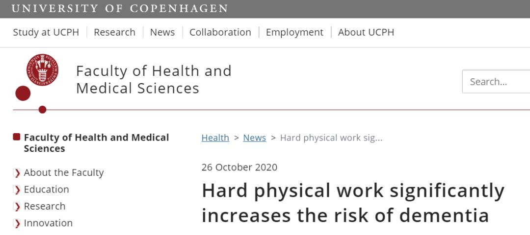 该研究的合著者之一是国家工作环境研究中心的MSO Andreas Holtermann教授。他希望哥本哈根大学的痴呆症研究能够使人们更加关注预防的重要性,因为大脑的改变早在此人离开劳动力市场之前就已经开始。