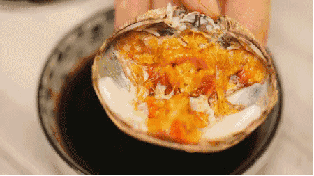蟹黄是母螃蟹的卵巢,颜色橘红,口感偏硬。不用多说了,多少人最爱的就是这一口。