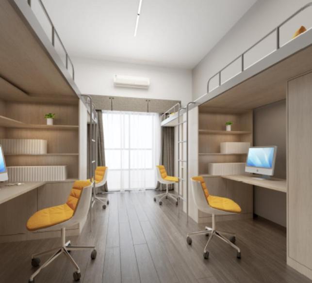 (2)其他配套:项目规划有400米跑道标准足球场及部分商业配套用房,其中户型方案按4人间进行设计,极大提升和完善了原有的配套设施。