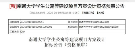 更多招标内容请识别二维码查阅☞南通大学学生公寓等建设项目方案设计资格预审公告