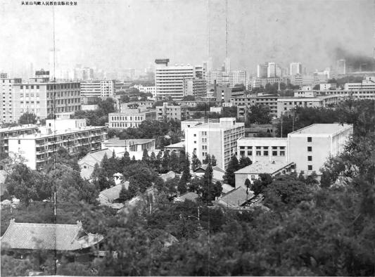 24层的人教社办公大楼向北有北京理工大学、中国人民大学、北京大学和清华大学,向南走可到中央民族大学、北京舞蹈学院和国家图书馆,东面是国防大学军事文化学院,西临北京外国语大学。众多文化和教育机构云集于此,学术氛围甚浓。若是遇上阳光普照、晴空万里的日子,站在大楼高层向西望去,绵延起伏的西山山脉清晰可见,颇有唐代文学家柳宗元在《始得西山宴游记》中所言的“尺寸千里”之感。