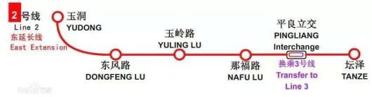 是南宁地铁2号线一期工程(玉洞—西津)的延续,线路全长6.3km,共设5座车站,西向东分别为东风路站-玉岭路站-那福路站-平良立交站-坛泽站,2号线东延线将加强五象新区与旧城区的联系,2号线东延线与3号线在平良立交站换乘。