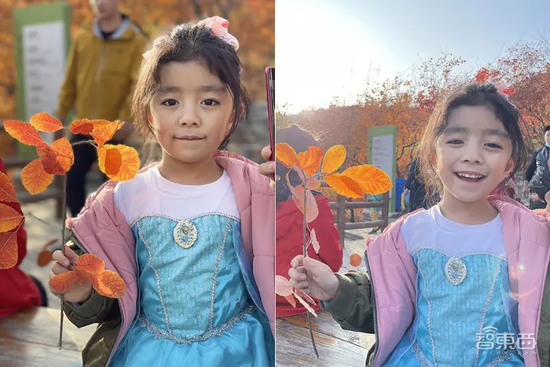 大光圈+HDR3的加持下,逆光人像也能获得很好的细节(右图),不过画面右侧可以看到一处镜头炫光。