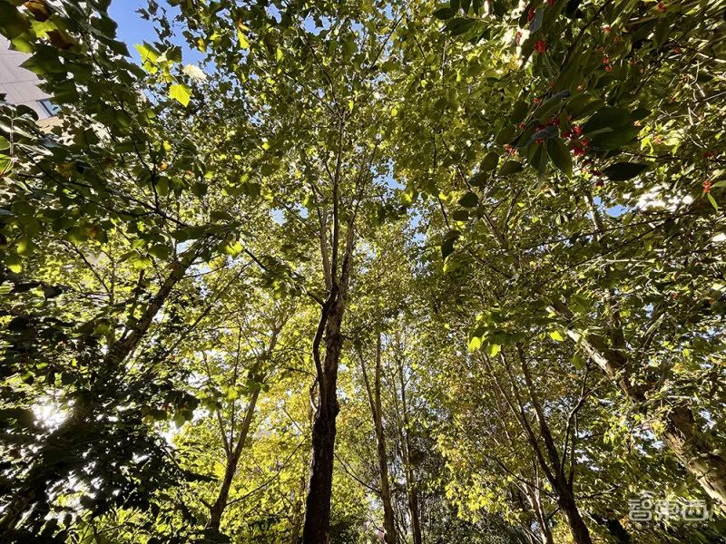 从成像色彩、质感上,肉眼很难看出差别,但远处的树木虚化得更明显了。