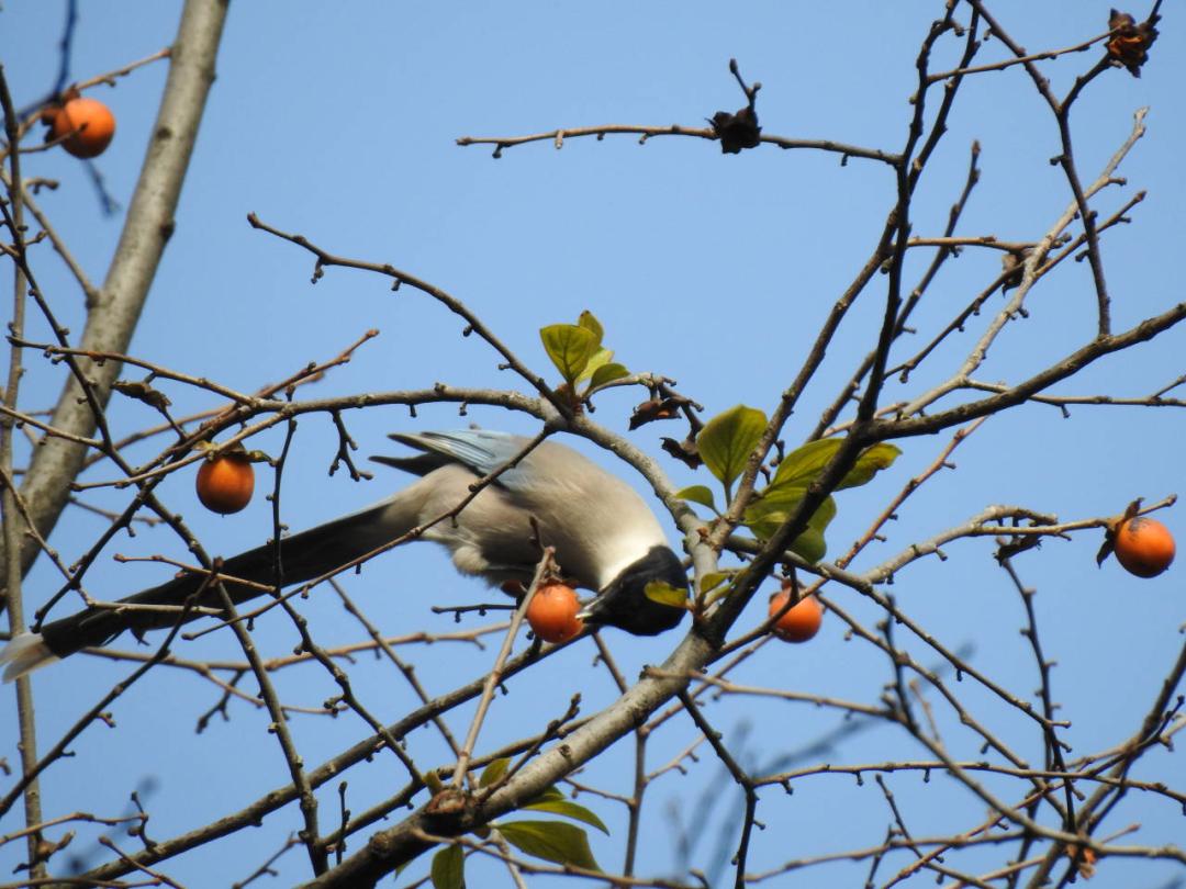 和大多数鸦科流氓一样,灰喜鹊聪明胆大,每当有猛禽出现,灰喜鹊会集群主动驱赶。灰喜鹊食性广泛,植物果实、昆虫,甚至动物尸体,都在灰喜鹊的食谱中。每当秋季植物开始结果,都会吸引大群灰喜鹊前来取食。情人坡的柿子树就颇得灰喜鹊恩宠,每逢秋季都会有许多灰喜鹊停在枝桠上取食。
