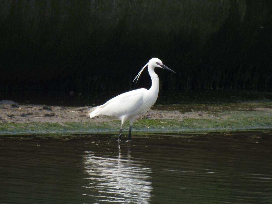 全身羽毛白色,嘴和腿呈黑色,趾黄色。其体态修长,嘴长、颈长、脚长,姿势优雅高贵。
