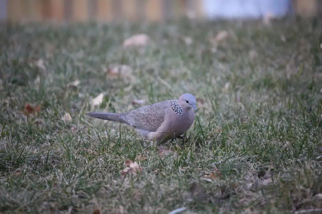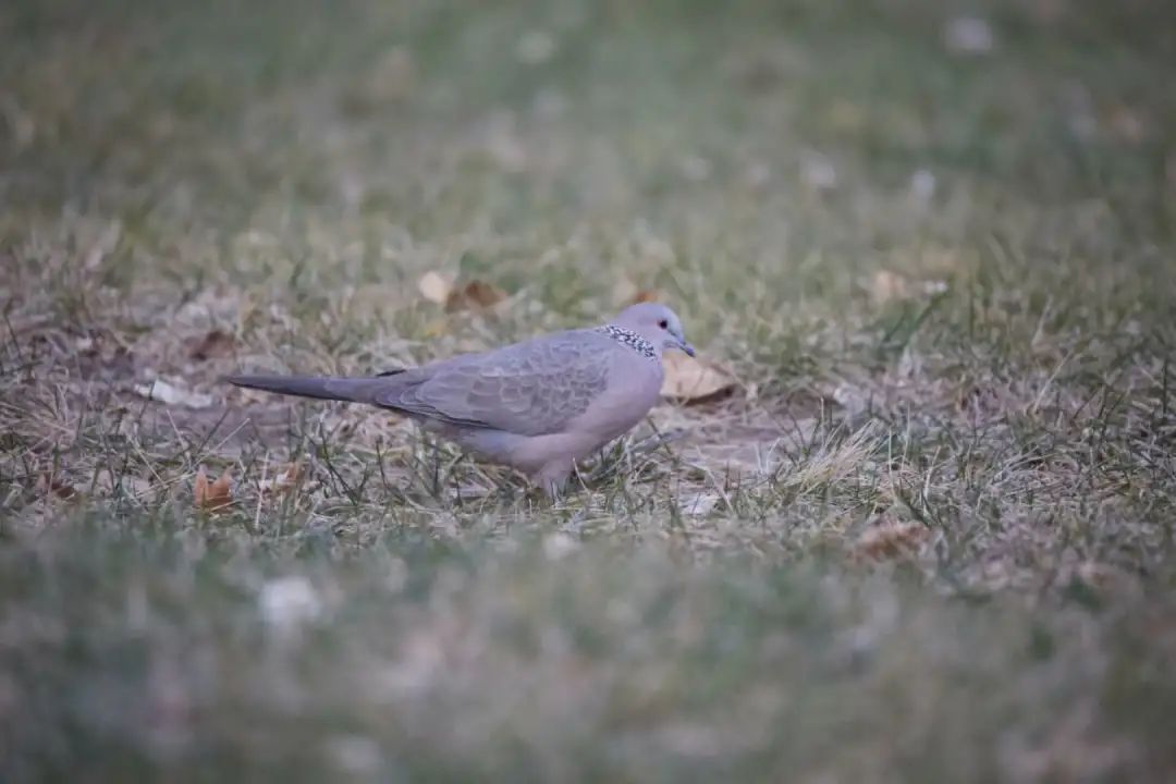 作为学校最常见的两种“鸽子”之一,脖子后面比较大的珍珠状花纹以及不那么艳丽的翅膀是它区别于其它山斑鸠的独家标识。