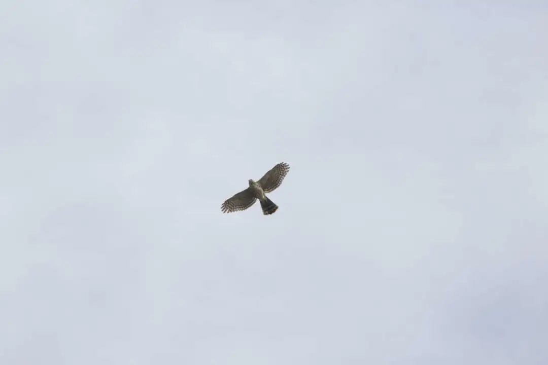 作为中型鹰类,凤头鹰具有较大的领地范围,因此在学校常常能看到其在天空翱翔的姿态,除此之外,凤头鹰也常常会选择诸如老图书馆楼顶,珞珈山上信号塔等地区作为其狩猎场的瞭望台,在高空睥睨着它的猎物。