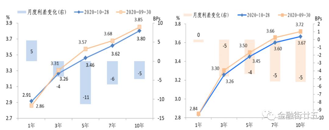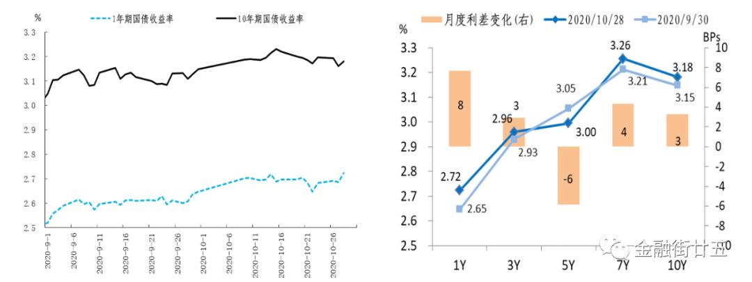 图2:10月国债收益率走势 图3:10月国债收益率变动